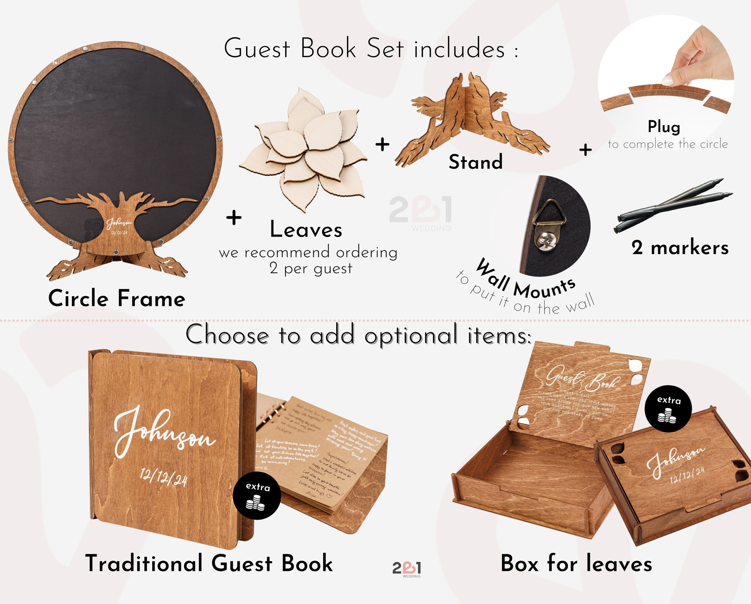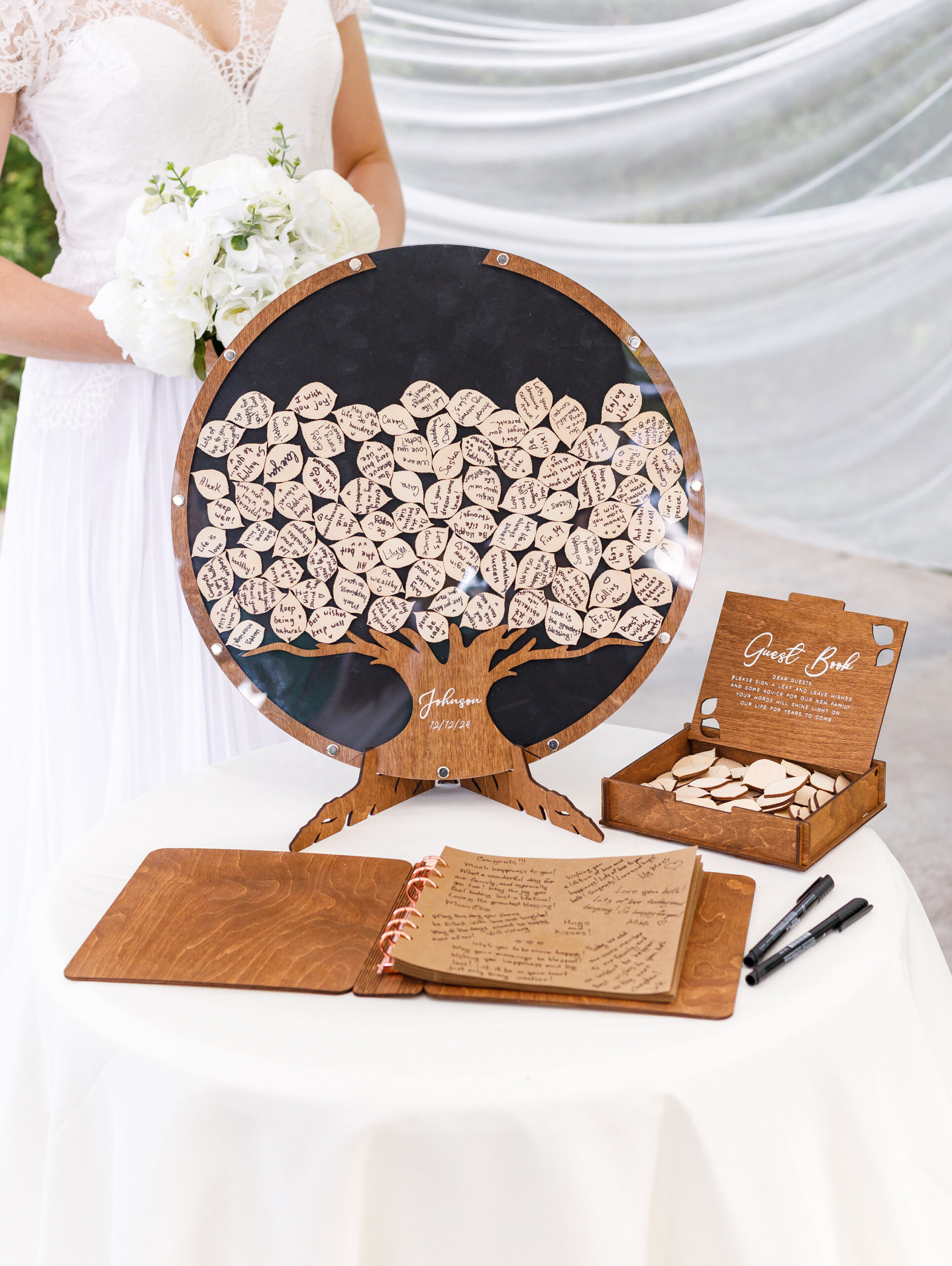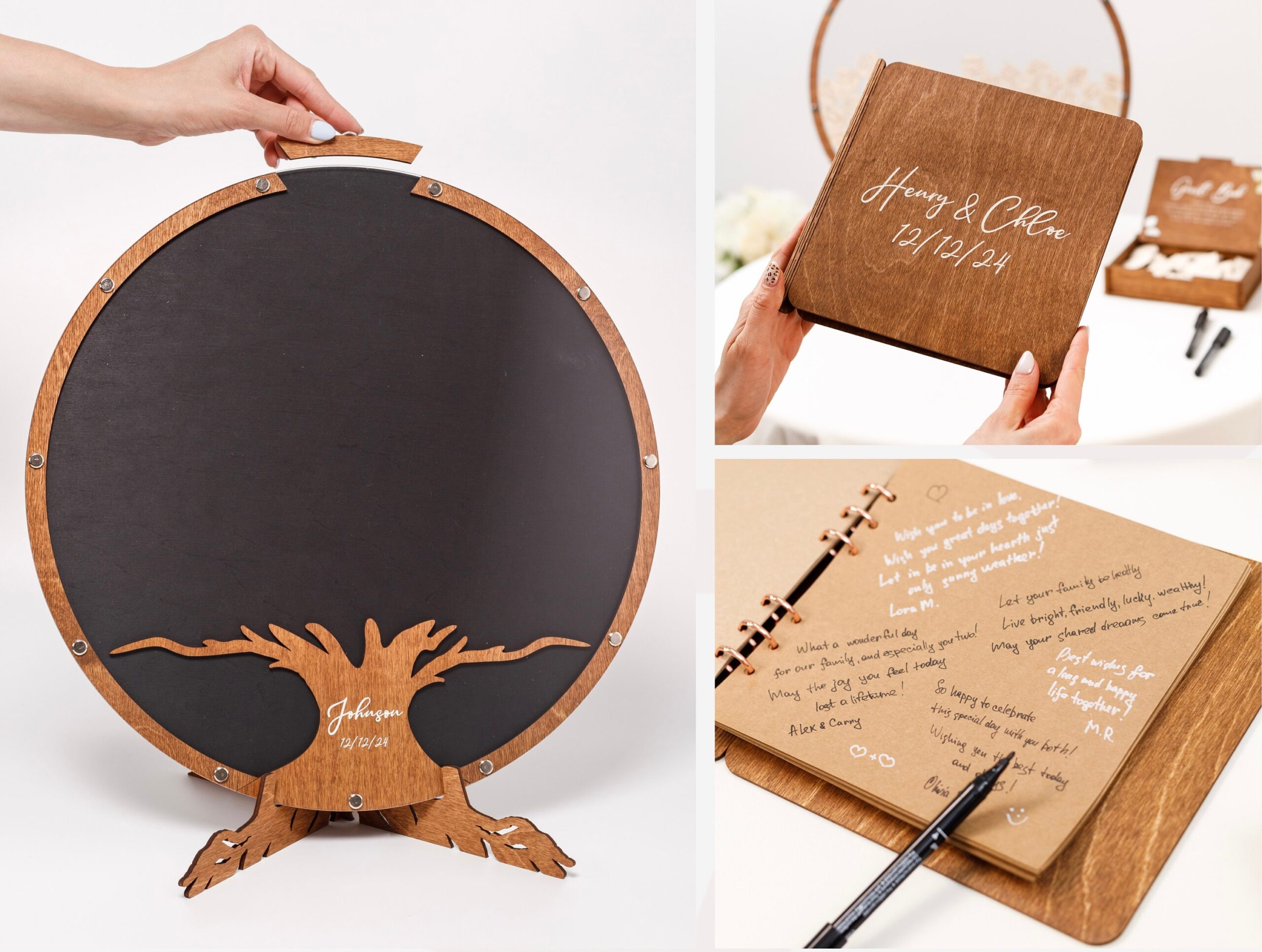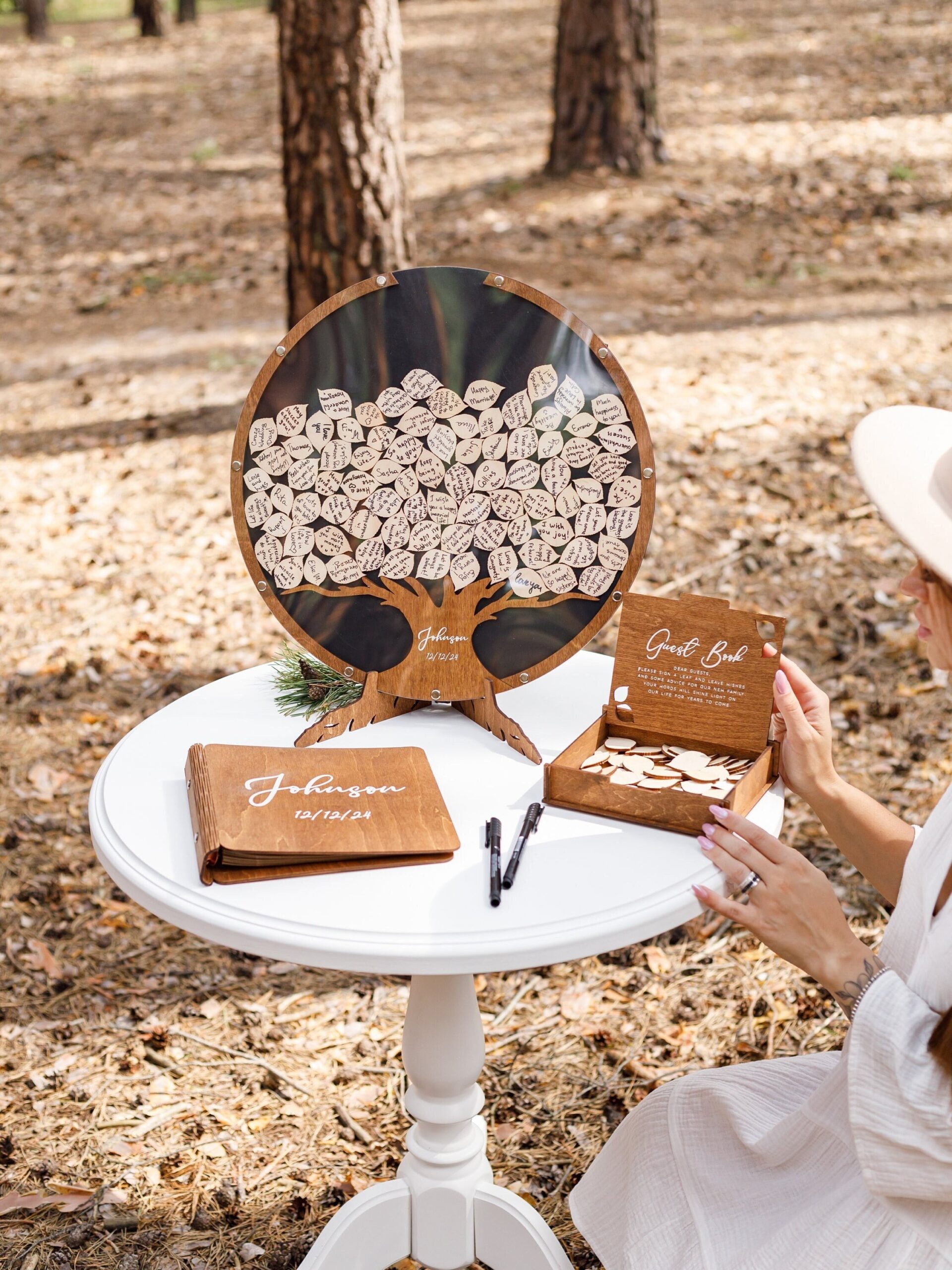 - Versatile Guest Signatures – Guests can sign directly on the wood leaves or write personal notes on add-on pieces.