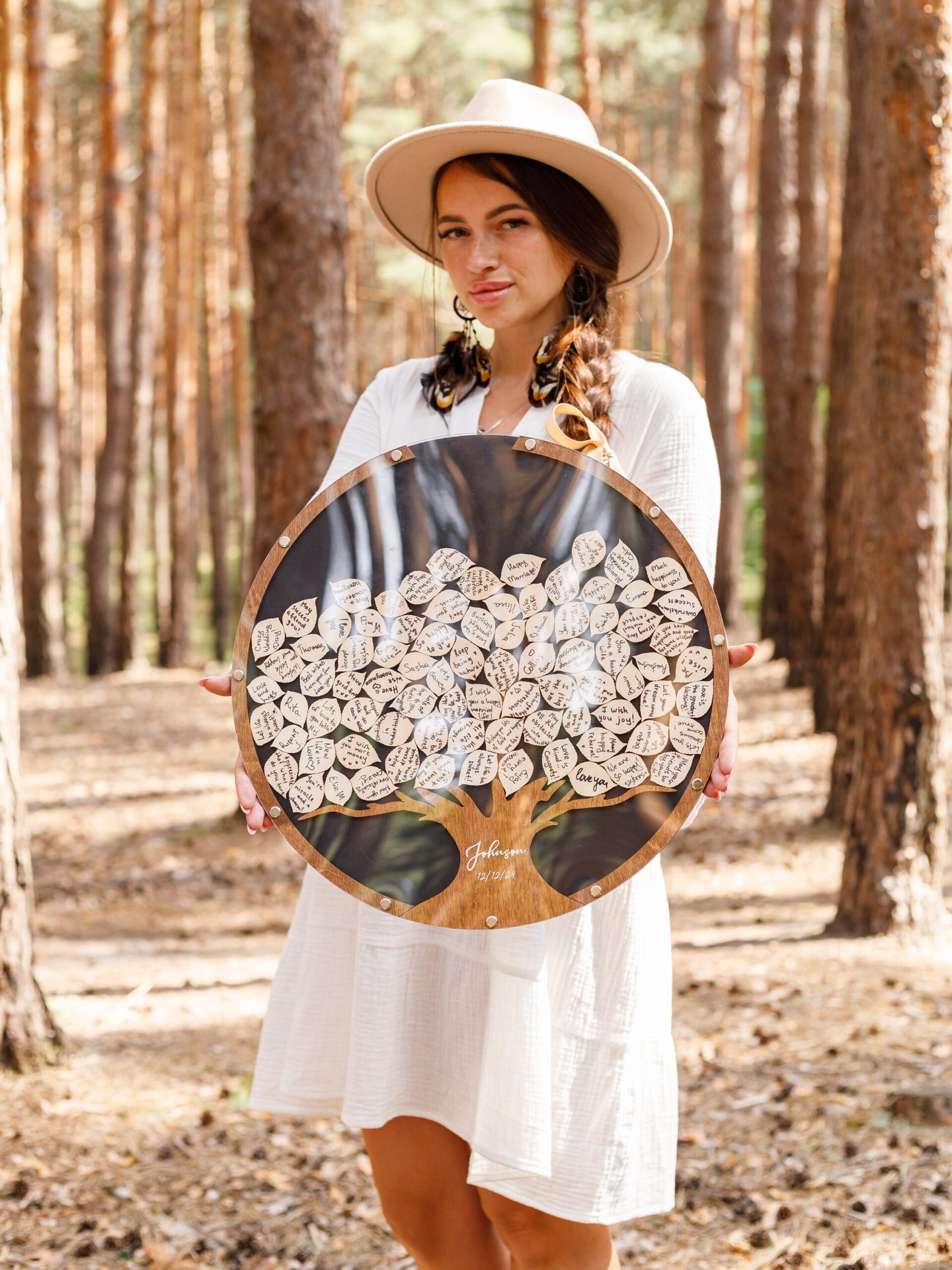 ✔ A forever keepsake that doubles as wall art ✔ Represents love, family roots, and unity ✔ Durable, customizable, and eco-friendly ✔ Enhances wedding décor with rustic elegance ✔ Keeps cherished guest messages visible every day